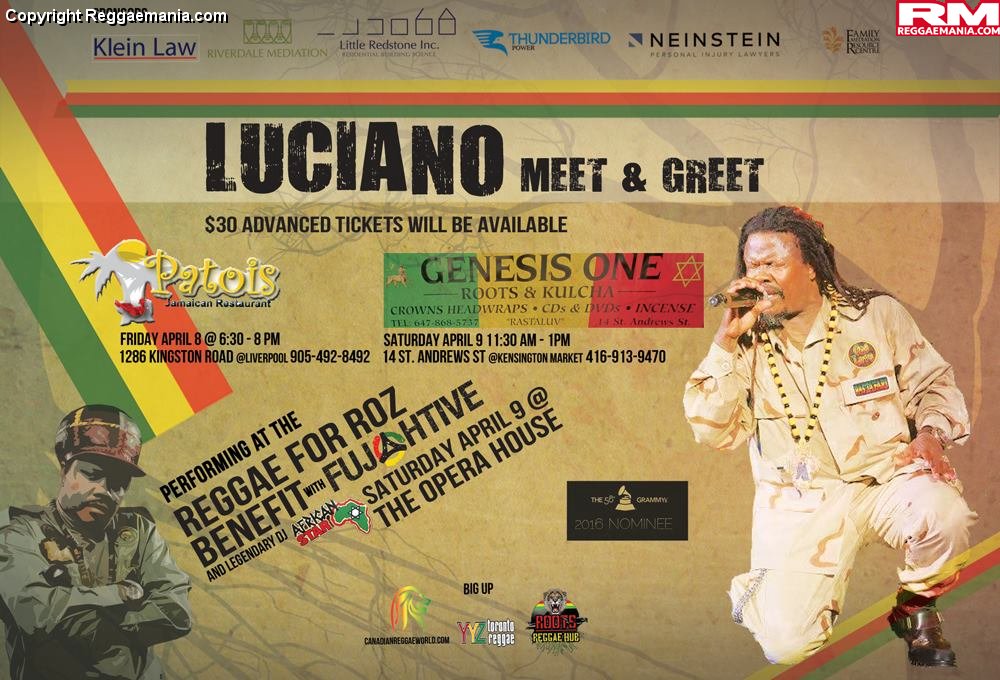 The Opera House had a healthy turnout last Saturday April 9th, as the one and only Luciano backed by the Riddim Up Band (alongside Fujative – who I did not see due to my late arrival), were headliners for a fundraising concert purposed to support ‘programs for Dr. Roz’s Healing Place – a women’s and children’s shelter’.  The show was a Pucca.ca Promotion, also featuring DJ African Star, and was hosted by Julian King (CanadianReggaeWorld.com).  Here is the info the way it was slated on the promoter’s page…