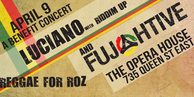 “After the success of last years Fujahtive Reunion show we are upping the stakes to help Children and Women fleeing domestic abuse have a place of safety and hope. We are pleased to announce this years Reggae for Roz show featuring international Grammy Award Nominated Reggae star Luciano Messenjah will be peforming his positive and conscious brand of Reggae music with supporting band Riddim Up. Juno nominated Fujahtive opens things up with their eight piece band which inlcudes the renowned Brass Roots horn section All proceeds to are to support programs for Dr. Roz’s Healing place a women’s and children’s shelter. Tickets are $30 (limited supply) in advance and $40 at the door.”
