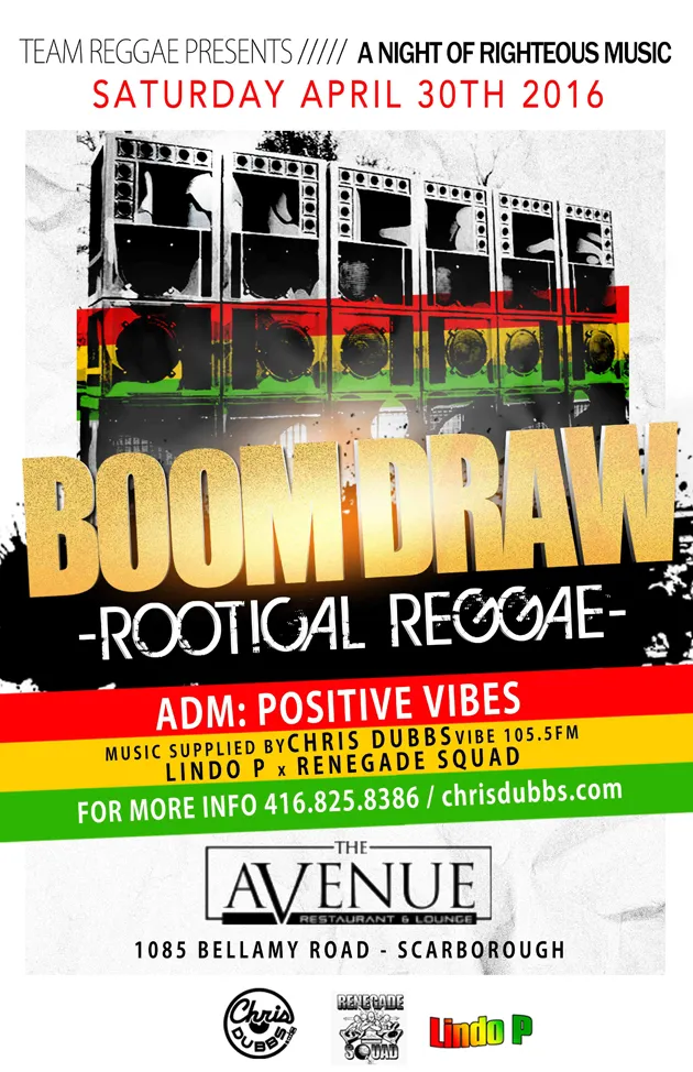 1Welcome to our April 2016 REGGAEMANIA EVENTS — We present to you a look through the lens of past April 2016 Reggae-Dancehall Events that took place the Toronto and surrounding areas.  See event Flyers, Reviews, Videos and Pics, and listen/download our Audio Podcasts.