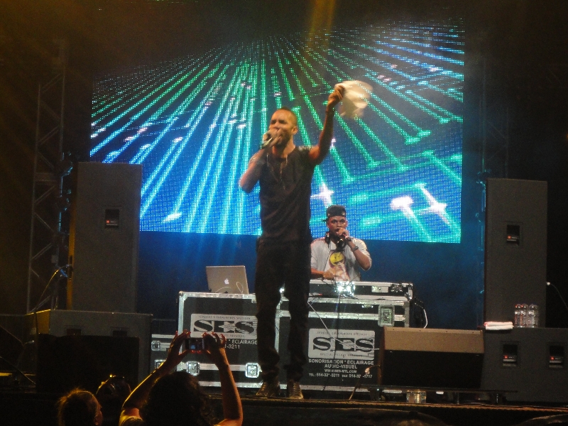 I know Sasco started with a wicked tune “Badmind People,” which we heard perfectly from the street as we walked away from theOldPort.Thousands of people strolled the boardwalk by the Old Port, less than 200 metres away from the MIRF, we walked with them by Bonsecours Market, passing market-stalls, food-trucks, jugglers and horse-drawn carts. It was a pretty cool walk, the 18th century architecture is staggeringly beautiful and hundreds of people were crowded near the entrance to the festival on benches and blankets in the grass, perfectly able to listen to the show and content not to watch it.