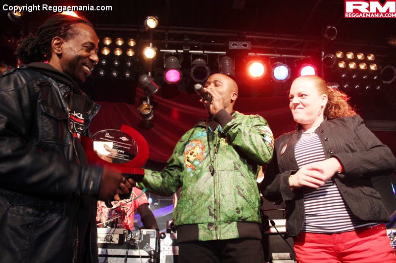 The audience loved this, and the place got loud with cheers and whistles of approval for Killa’s warrior spirit. Beres Hammond’s “One Dub, One Life” followed up the speech. It was a good moment, Killa bragged that he could “play Bounty and Buju all night”, but then technical problems made his dubs inaudible, and a great start was staggered by a negative momentum shift. Killa would return with some Tarrus Riley, bragging that “A Galloway mi born and defend”, and that at the end of the day you would see that he’s “a bloodclaat warrior”! Big up Killa for this Round, he got big forwards, making people get off their chairs and “two-tiles” and move towards the stage for the first time in the dance, including an excited and jubilant Fire Kid Steenie who just couldn’t resist jumping on the stage to personally deliver his forwards to Killa. Killa anchored his Round by stating that “Nobody can talk to Studio Mixx when it comes to Bounty Killer”, and got very good cheers, whistles and applause by Round’s end.