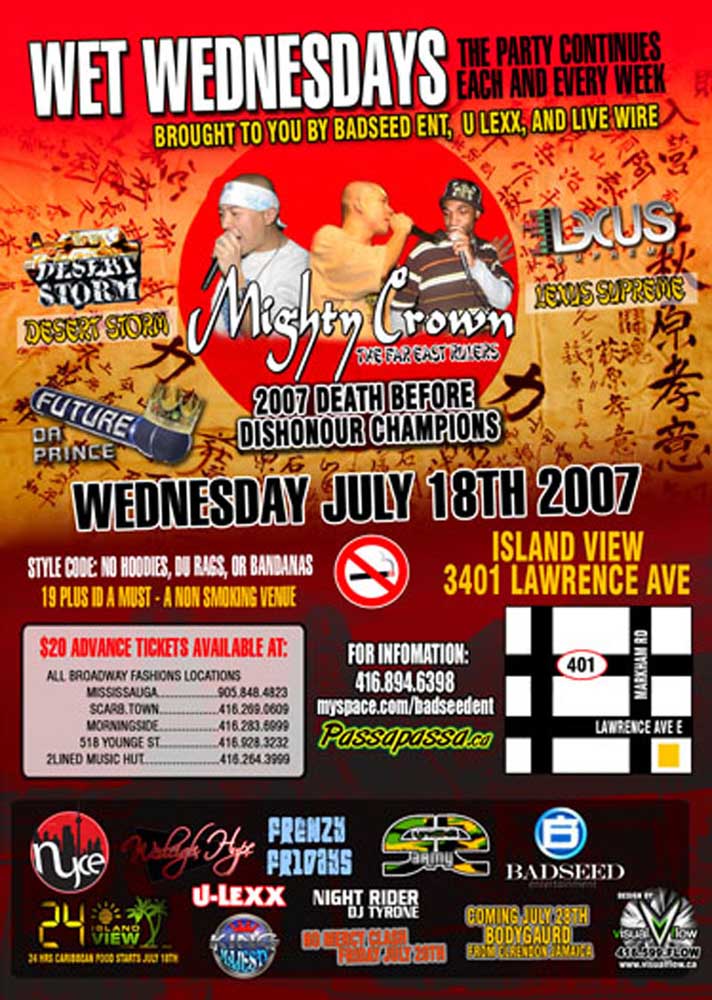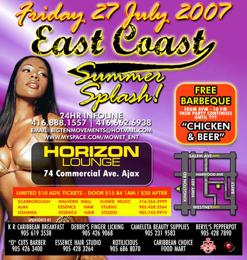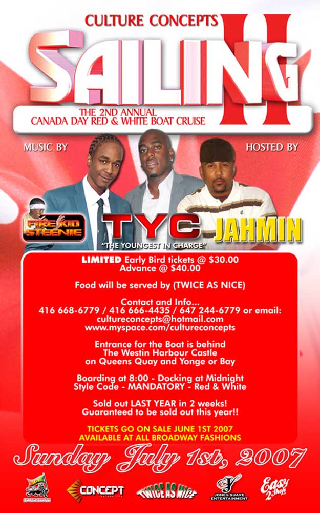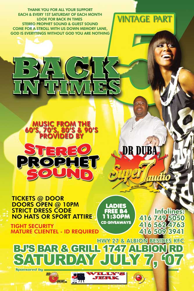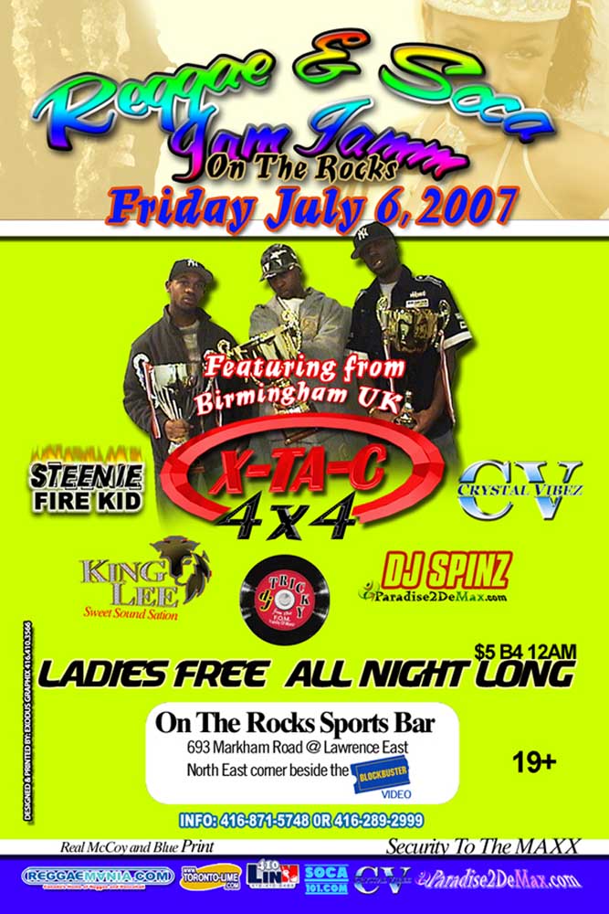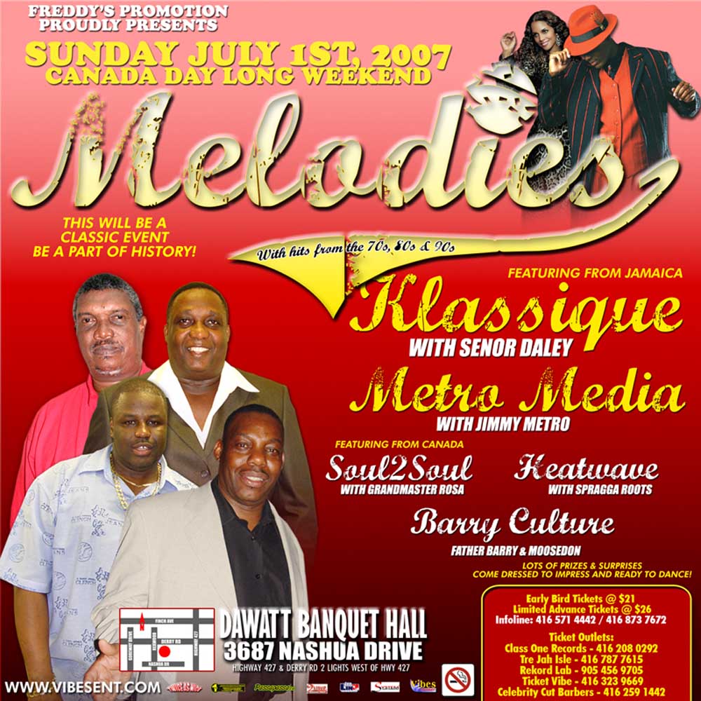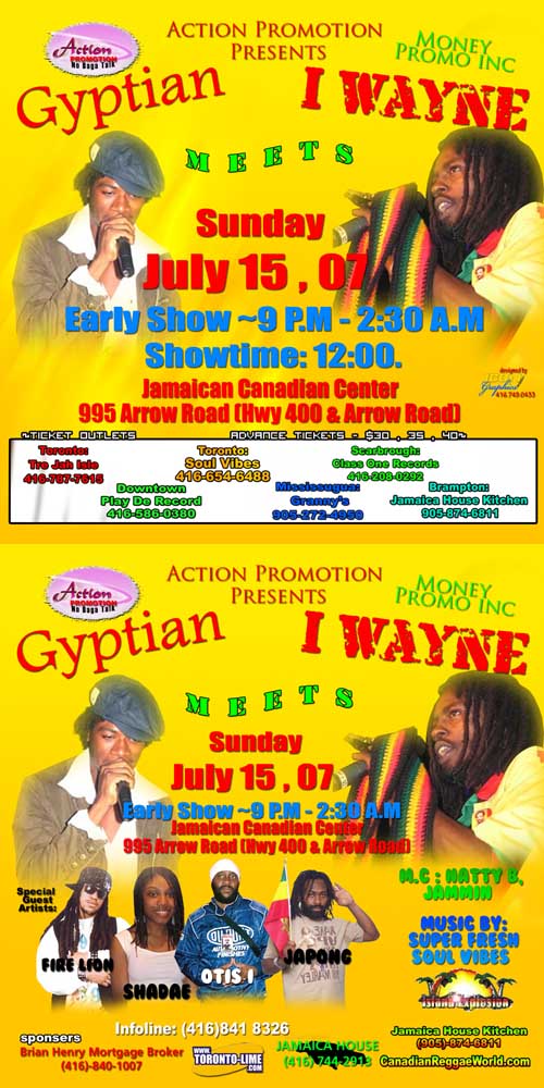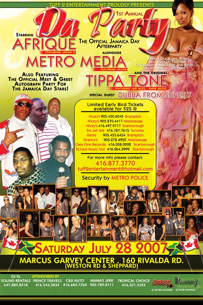 Welcome to our July 2007 REGGAEMANIA EVENTS — We present to you a look through the lens of past July 2007 Reggae-Dancehall Events that took place the Toronto and surrounding areas. See event Flyers, Reviews, Videos and Pics, and listen/download our Audio Podcasts.