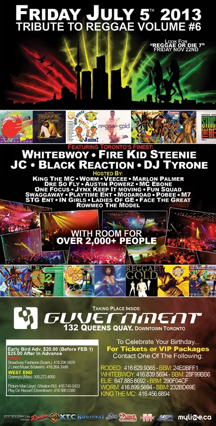 Welcome to our July 2013 REGGAEMANIA EVENTS — We present to you a look through the lens of past July 2013 Reggae-Dancehall Events that took place the Toronto and surrounding areas.  See event Flyers, Reviews, Videos and Pics, and listen/download our Audio Podcasts.