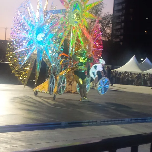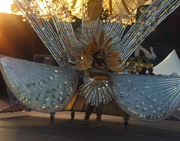 Thursday night before the parade could only mean the King and Queen competition at Lamport Stadium. This is the night where all tireless hours in the camp pay off, (or not).  The crowd in the stands are territorial and let you know it. Shouting out which band they defend. The masqueraders give the fans what they want, gyrating to the biggest soca tunes, while pulling “big mas” costumes. Some spanning hundreds of feet in width. Louie Saldenah’s King was the big winner for night, with portraying an ode to Machel Montano. Hats off to the “Saly” crew for an awesome depiction of costume finery (and the Machel “Like Ah Boss” sealed the. Win in my humble opinion).