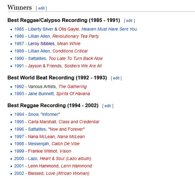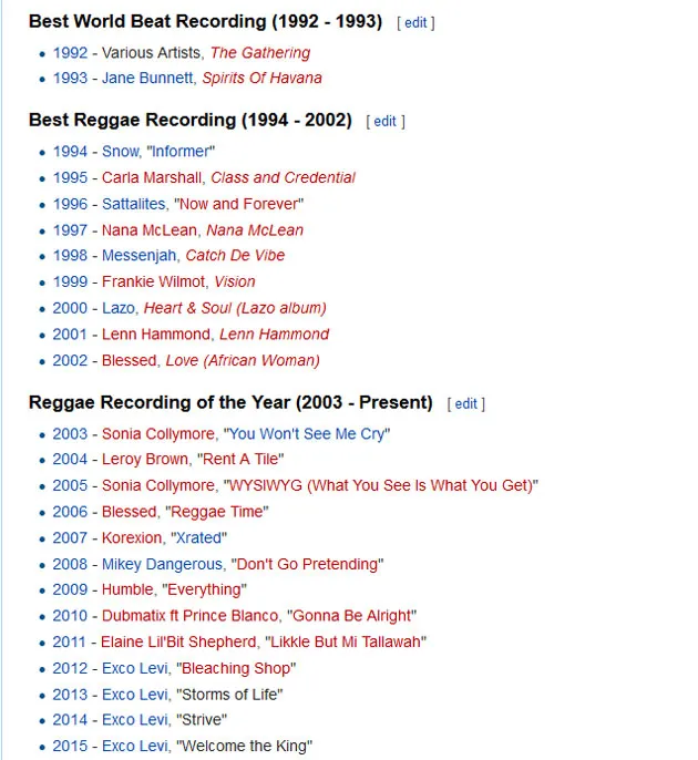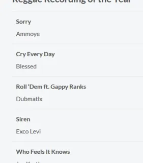 The Juno category Reggae Recording of the Year has been awarded since 1985. Before we take a look at the 2017 nominees, let’s first big up Kafinal! – last year’s Reggae JUNO Award winner, and while we’re on the congratulatory tip, we have to mention Exco Levi, who received the award four time consecutively between 2012 and 2015. And now, the nominees for Reggae Recording of the Year…“Sorry” (Ammoye), “Cry Every Day” (Blessed), “Roll ‘Dem” (Dubmatix ft. Gappy Ranks), “Siren” (Exco Levi), and “Who Feels It Knows” (Jay Kartier).